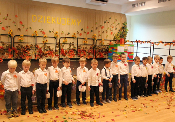 Długo oczekiwanym i radosnym dniem dla całej wspólnoty przedszkolnej był dzień 12.10.2024 r., dzień poświęcenia nowego budynku przedszkola. Uroczystość rozpoczęła się dziękczynną Eucharystią, a po niej rozpoczęła się ceremonia poświęcenia przedszkola. Została odczytana modlitwa i poświęcona nowa figura św. Józefa z Jezusem umieszczona w holu głównym przedszkola. Potem delegacja udała się do sal dziecięcych i pozostałych pomieszczeń na I i II piętrze. W tym czasie goście pozostający w sali gimnastycznej wysłuchali wierszy ułożonych przez dzieci z rodzicami. Na zakończenie na dużej scenie wystąpili nasi mali aktorzy z III i IV grupy (starszaki i zerówka). Przy radosnych i skocznych piosenkach powitali zebranych gości oraz panią jesień i wyrazili swoją radość z nowego przedszkola. Zagrała też jesienna orkiestra a najstarsza grupa wykonała piękny jesienny taniec. Chłopcy w strojach budowniczych, pod opieką św. Józefa wybudowali na scenie z dużych klocków okazały budynek przedszkola. Występ przedszkolaków został nagrodzony gromkimi brawami. Po zakończonych występach artyści wręczyli zaproszonym gościom skromne upominki. Zwieńczeniem całej uroczystości był poczęstunek przygotowany dla wszystkich uczestników uroczystości. Dziękujemy Panu Bogu i św. Józefowi za ten wspaniały dar, nowy budynek przedszkola, za wszystkich naszych dobrodziejów duchowych i materialnych, za każdy przejaw życzliwości i dobroci serca. Niech św. Józef wstawia się za nami.